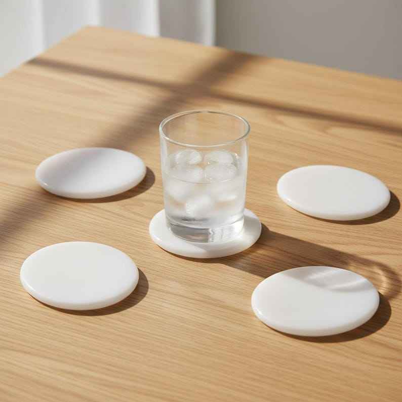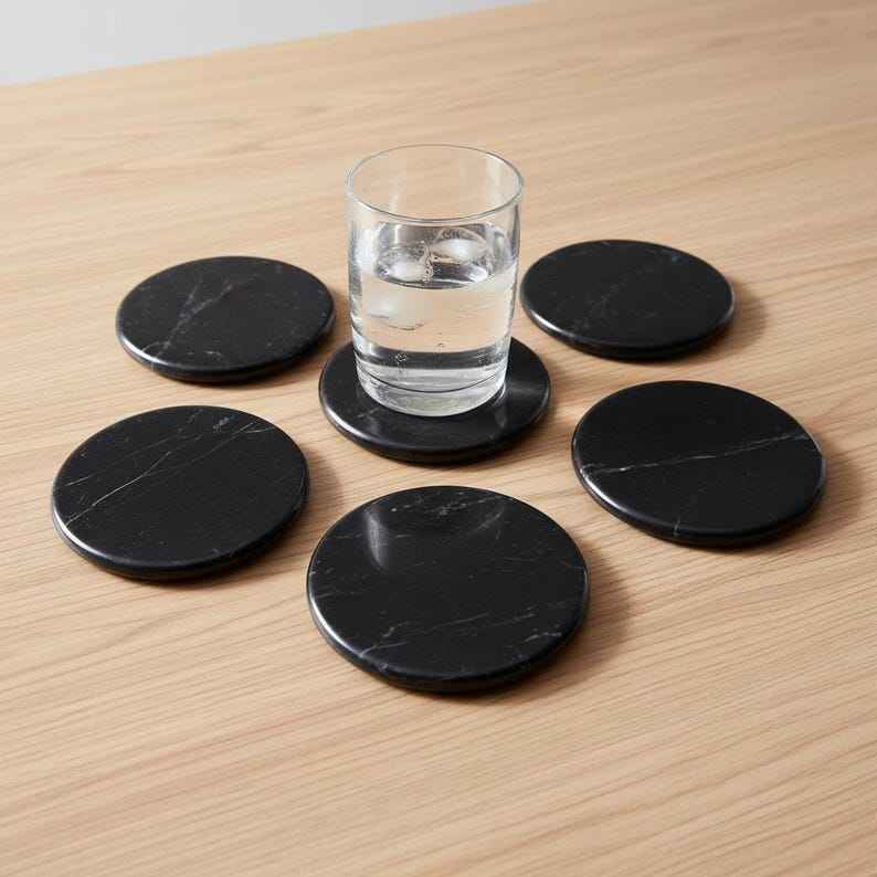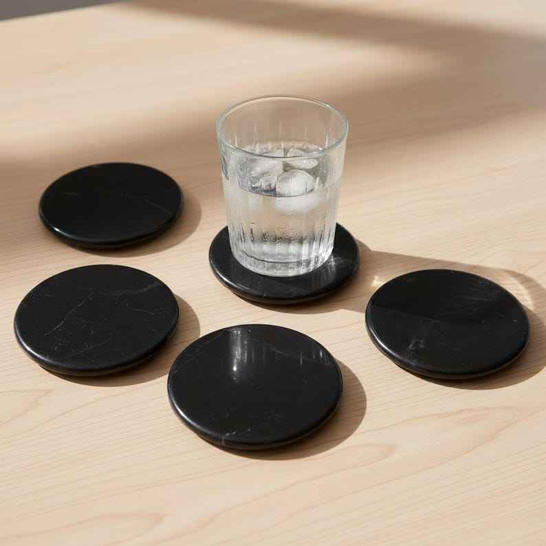 Round Polished Marble Coasters Double Sided Modern Minimalist Drink Coasters Set