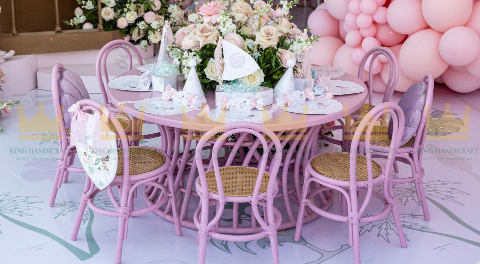 Round Purple Kids Rattan Table and Chairs for Birthday Parties - Safe, Stylish, and Perfect for Fun-Filled Celebrations
