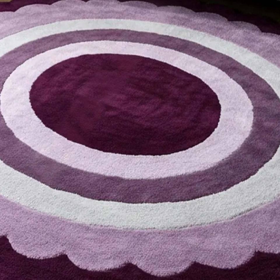 Round Purple Rug Scalloped Edge Area Carpet Modern Hand Tufted Rug Circular Plush Rug for Living Room Bedroom Decorative Style