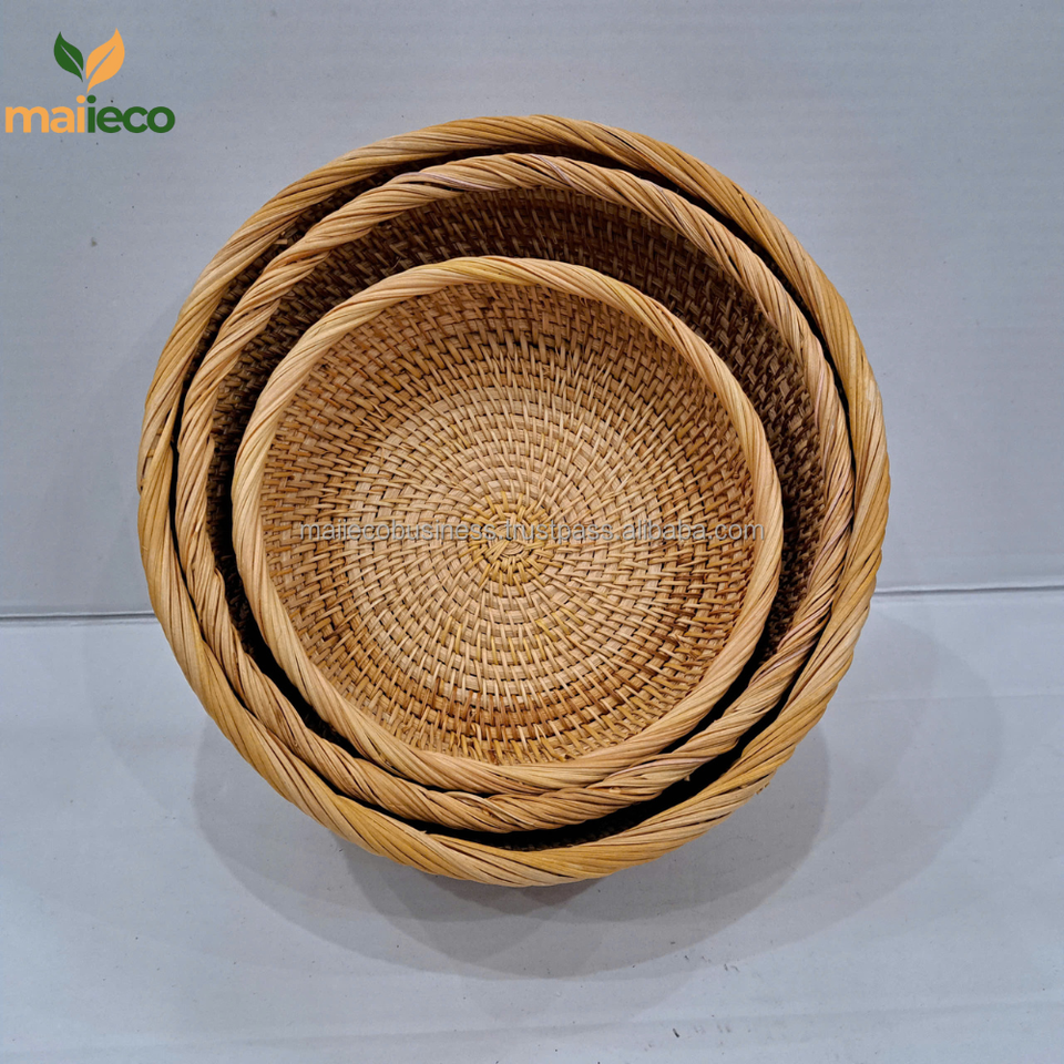Descriptions:Hand Woven Bamboo Tray Steamed Bread and Fruit Basket