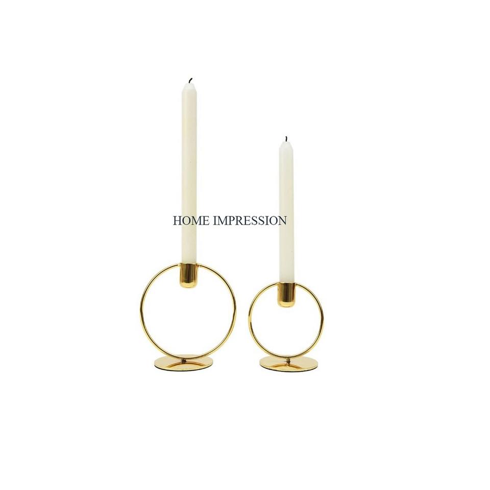 Round Ring Design Gold Polished Metal Candle Holders Table Ware Hotels and Home Indoor and Outdoors Lightening Candle Holders