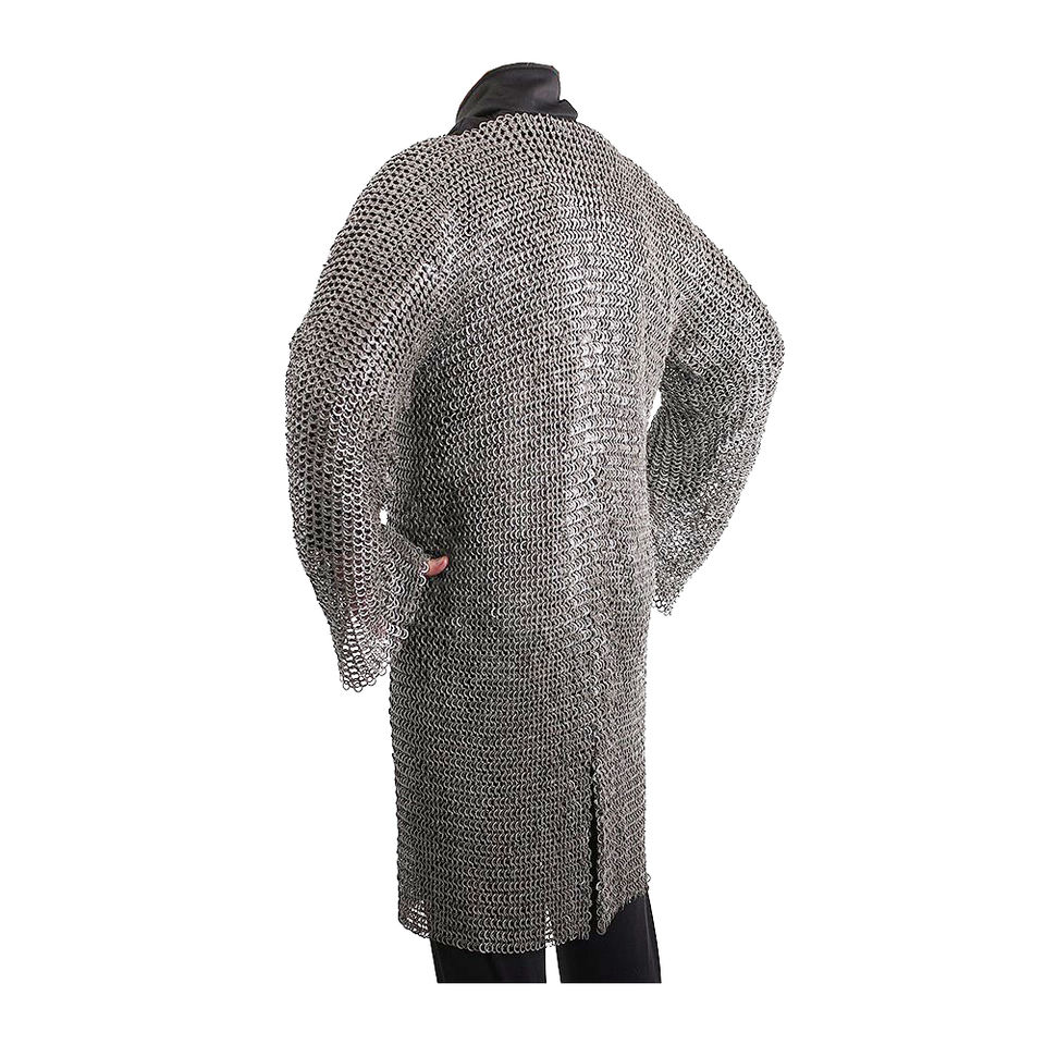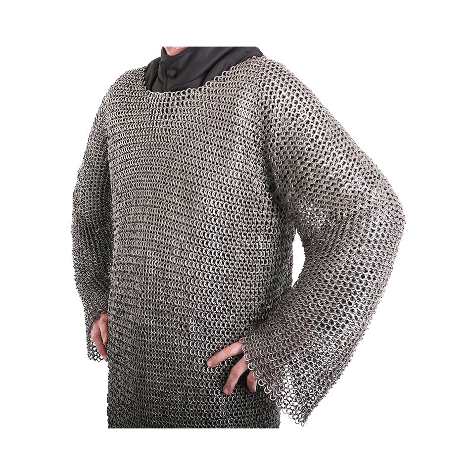 Round Riveted Solid Ring Chainmail Hauberk Full Sleeves Zink Finish-Mild Steel Chainmail Armor Largest Manufacture Company