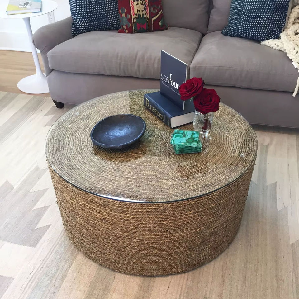 Round Rope Coffee Table For Balcony Garden Patio And Indoor Spaces With Elegant Modern Decorative Look