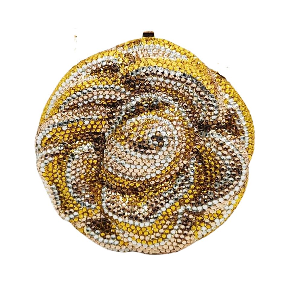 Round Rose Flower Crystal Clutch Purse for Women Sparkly Evening Bag Formal Rhinestone Handbags Wedding Purse
