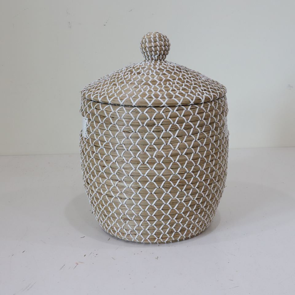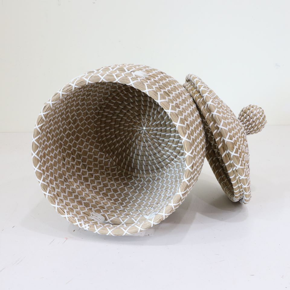 Round Seagrass Basket Storage Basket With Lid Versatile Cloth Storage for Bathroom Kitchen Garage