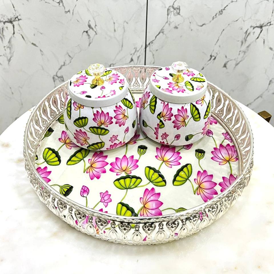 Round Serving Tray with Cutout Design for Home Decor & Gifting Food Serving Application