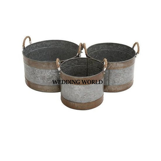 Round Set of Three Metal Planter Pot Superior Quality Handmade Planters Garden Ware Wholesale Metal Planter