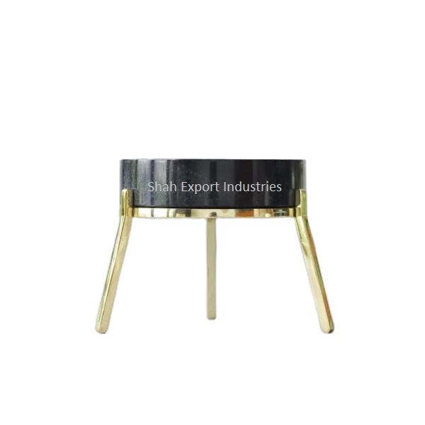 Round Shape Black Marble Decorative Candle Holder With Golden Metal Frame Pillar Candle Stand for Home Decoration