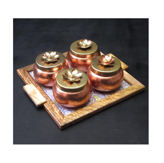 Round Shape Copper Decorative Dry Fruits Nut Jar Usage For Home And Diwali Decoration Set of 4 gifted item