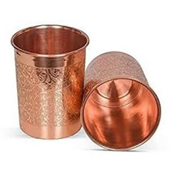 Round Shape Cups Copper Designer Hammered Design Copper Glass Tumbler Drinkware Server Ayurveda Benefits Copper Glass