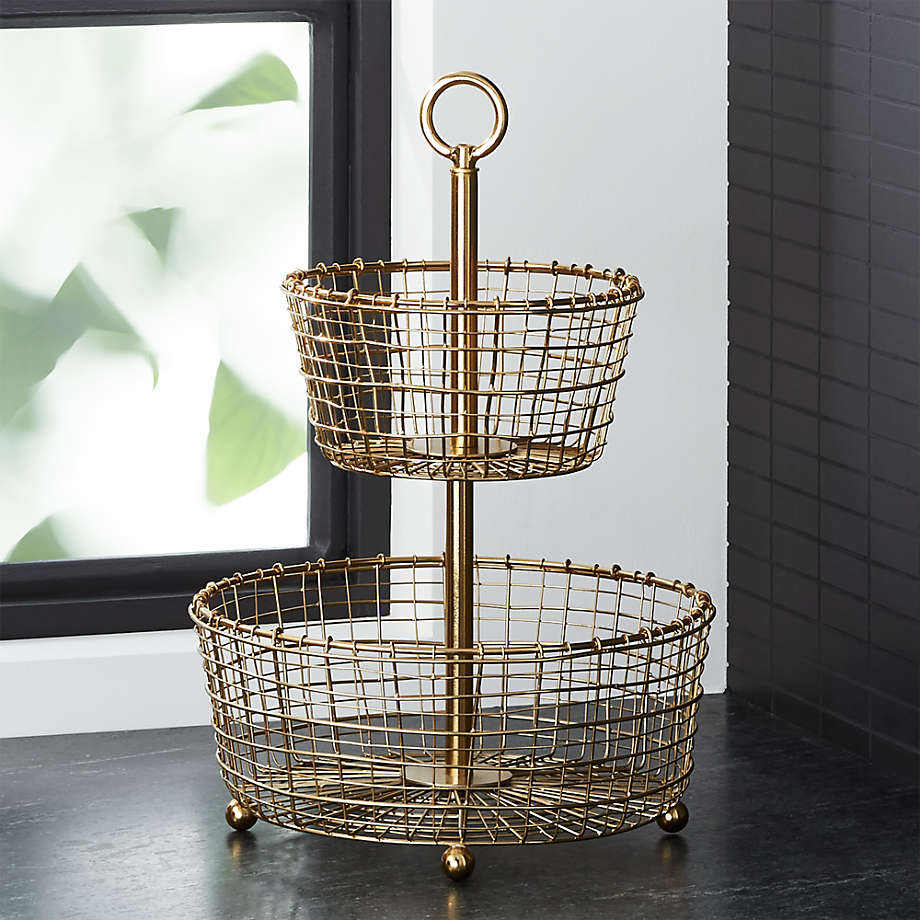 Multi-tier vegetable and fruit basket crafted in sturdy metal ideal for pantry shelves dining tables and modern kitchen decor
