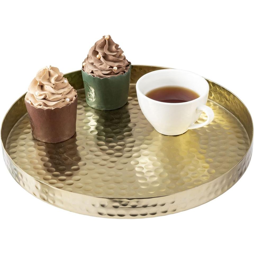 Creative Metal Gold Plated Hammered Fruit Pattern Modern Multi-Functional Durable Metal Serving Tray for Serving Drinks Decor