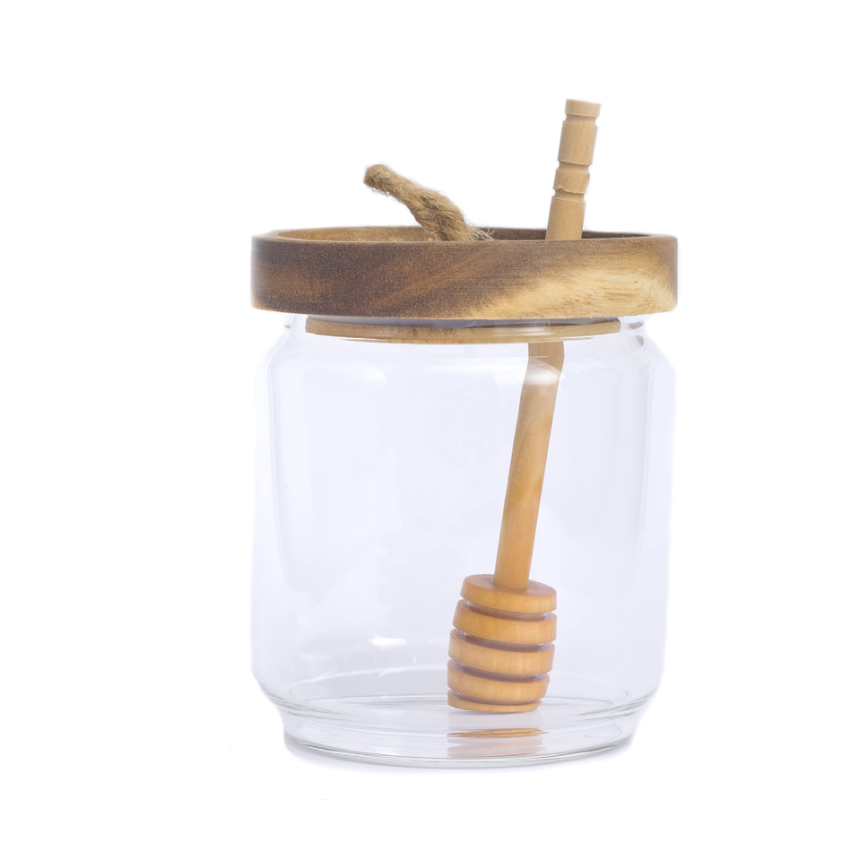 Round Shape Jar Honey Box Food Storage Sealed Tank Honey Jar Container Glass Honey Jam Jars With Wooden Lid and Spoon