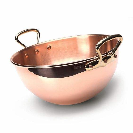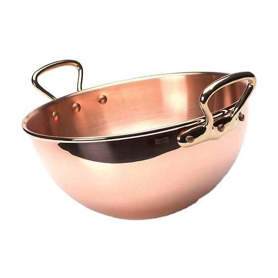 Round Shape Large Copper Pure Material Food Bowl With Brass Handles Best Selling Kitchen Ware