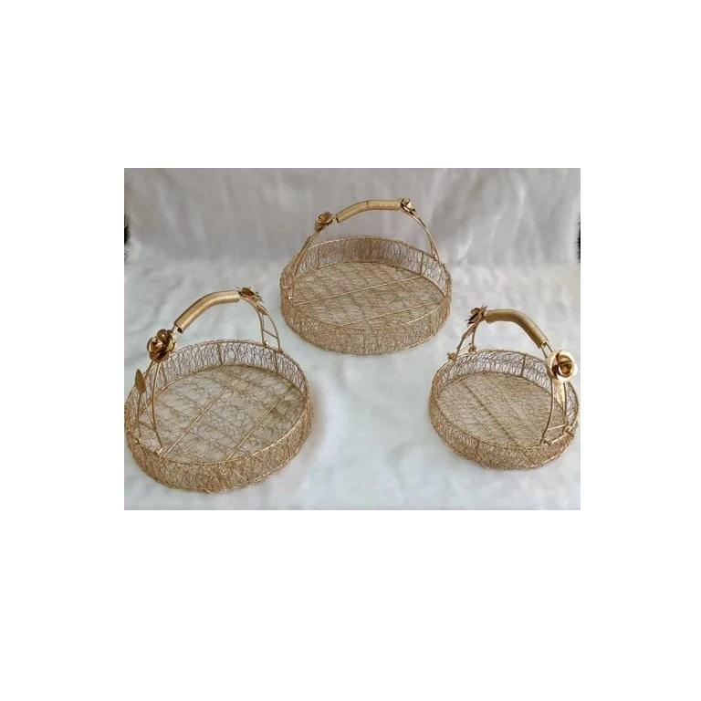 Round Shape Mesh Hamper Basket for Home & Hotel Custom Size Unique Design Golden Wire Hamper Gift Basket for Wedding