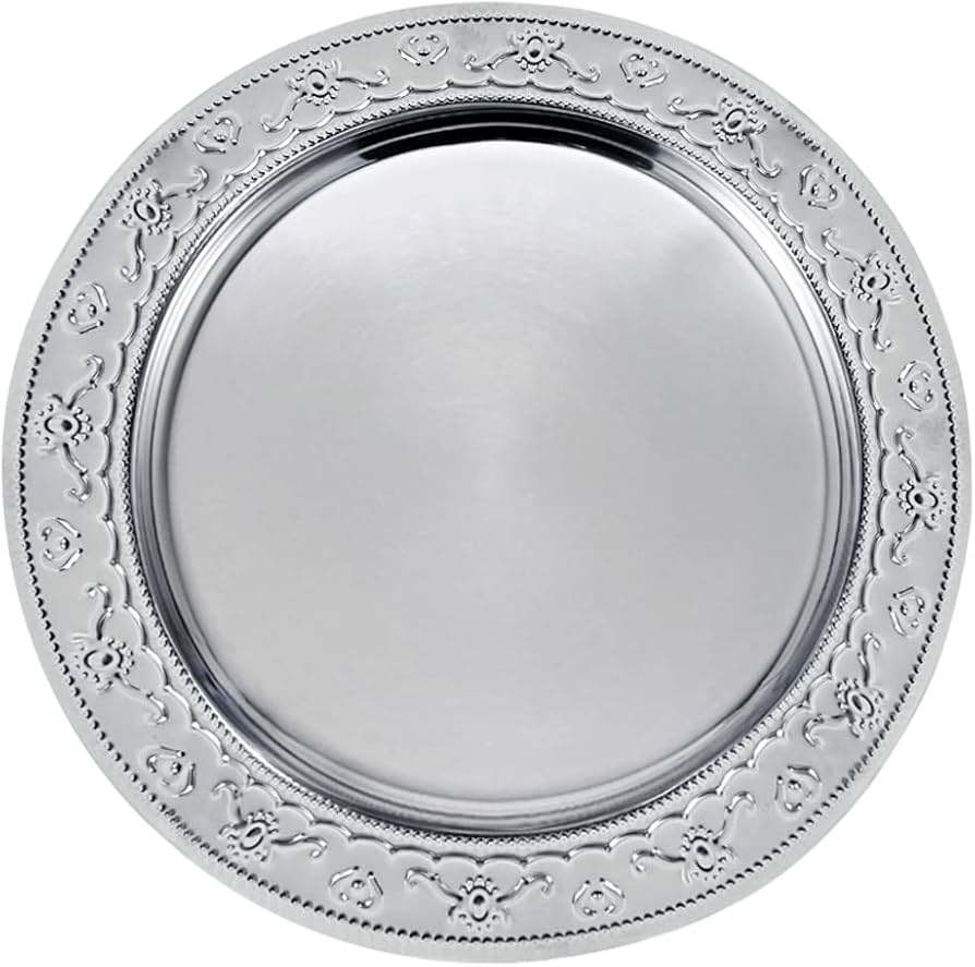Round Shape Metal Charger Plates Silver Finished for Wedding Parties Tableware Food Safe Dinnerware Charger Plates