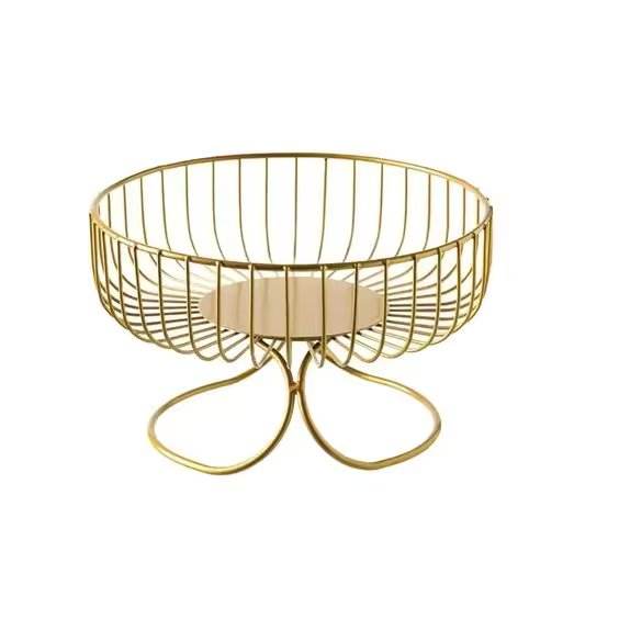 Round Shape Metal Wire Fruits Basket for Table Top Kitchen Usage High Quality Gold Plated Fruit Basket With Stand