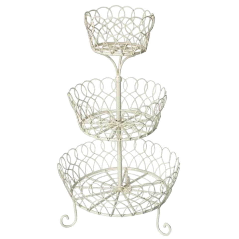 Round Shape Metal Wire Storage Basket in Black Color Use for Home and Kitchen Counter Top Storage Basket With 3 Tier