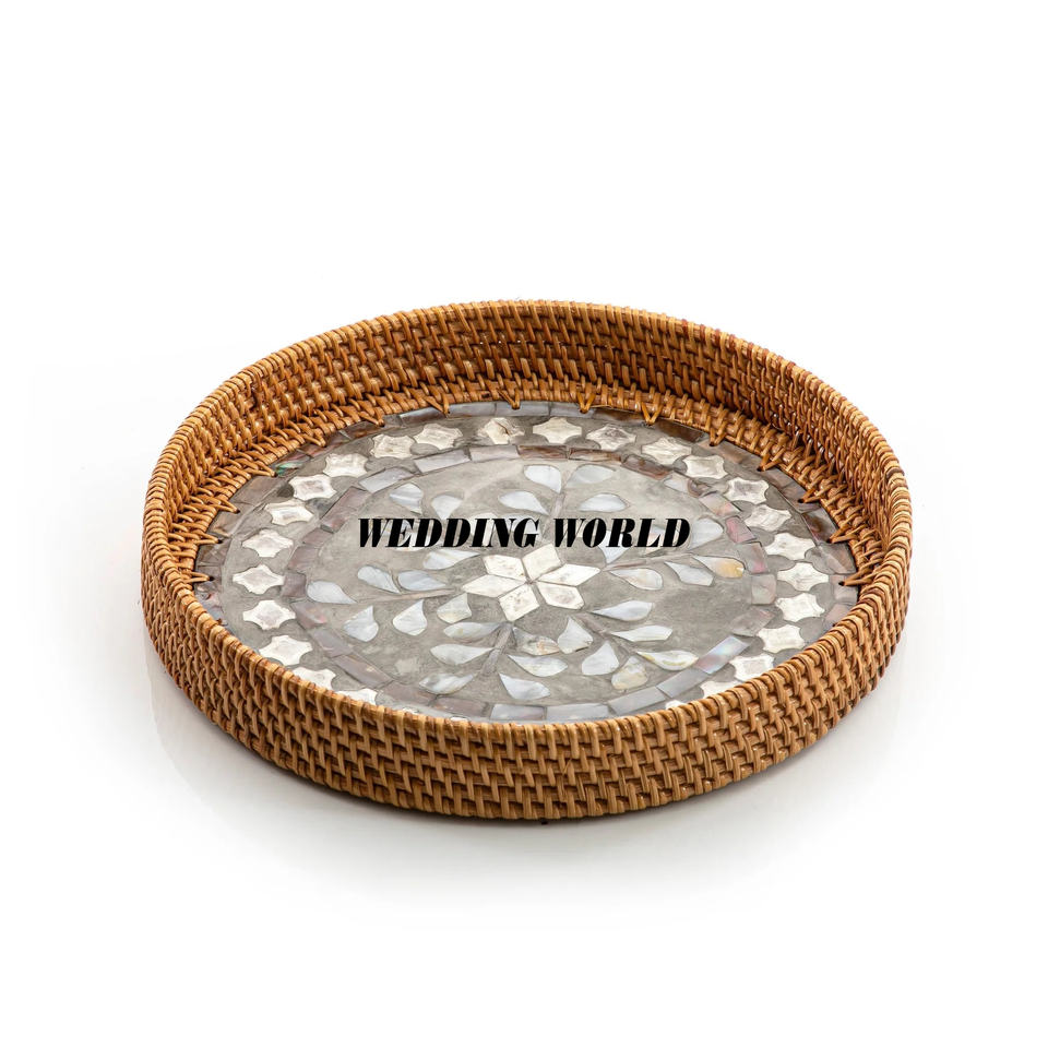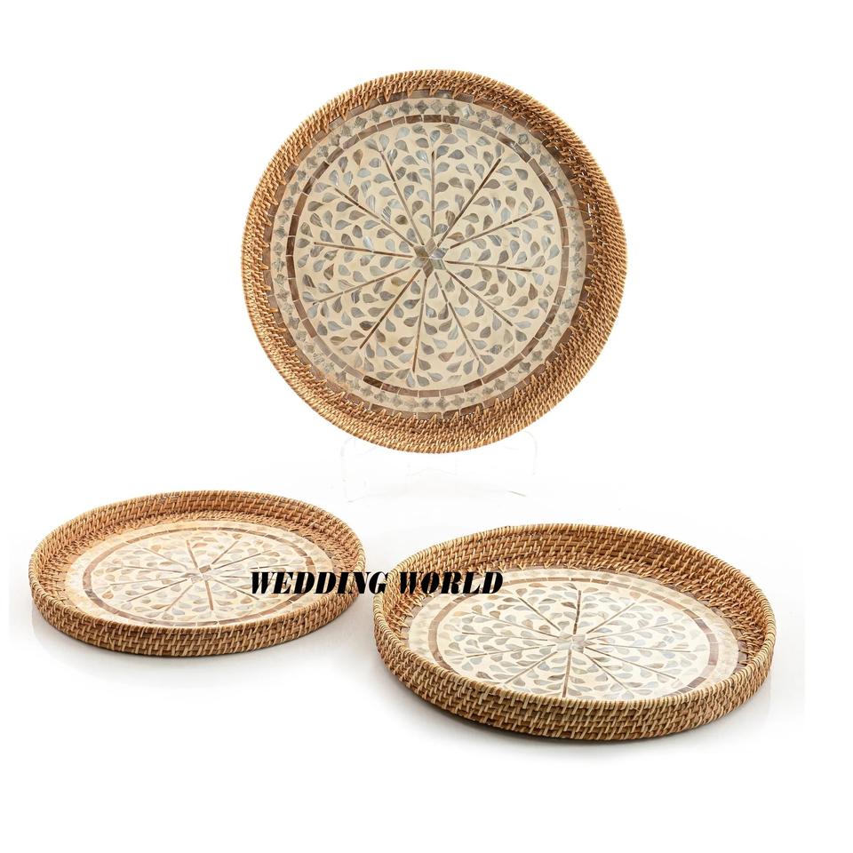 Table Decoration Round Shape Rattan Serving Tray Premium Quality Handmade Designer Platter Set Of Three Wholesale Rattan Tray