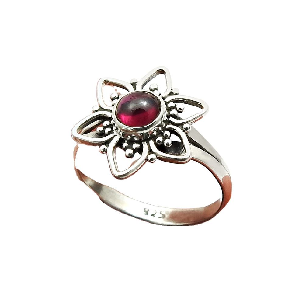Round Shape Red Garnet Gemstone Bezel Set in 925 Sterling Silver Handmade Flower Rings Wholesale Fine Silver Jewelry Women Gift
