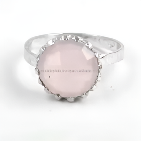 Round Shape Rose Chalcedony Gemstone925 Sterling Silver Designer Ring Silver Plated Fashionable Ring Wholesale Jewelry For Women