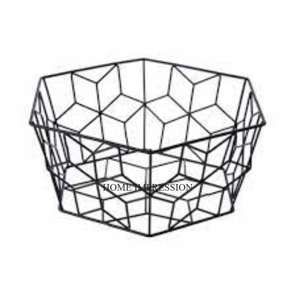 Round Shape Set of 2 Wooden Base With Metal Wire Made Frame Vintage Art Collection Fruits and Bread Storage Oraganization Basket