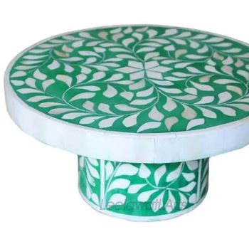 Round Shape Wood Bone Inlay Tableware Cake Server Ware Platter Stand Superior Quality Large Size Restaurant Cake Stand