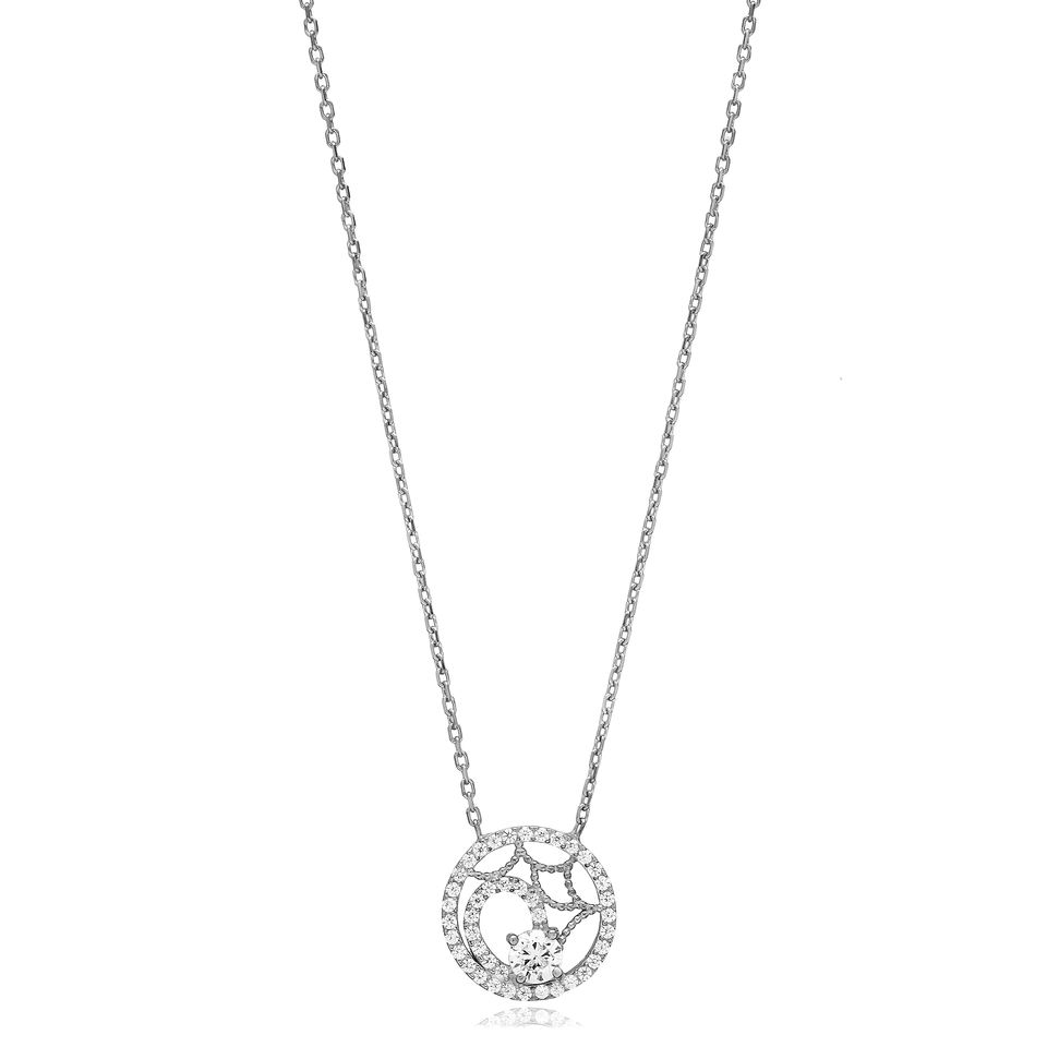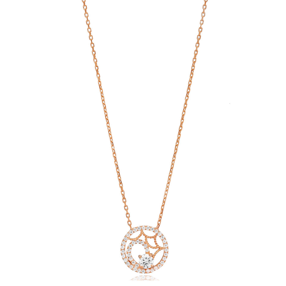 Round Shape Zircon Stone Wedding Charm Necklace 925 Sterling Silver Jewelry Turkish for Women