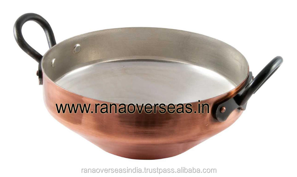Round Shaped Eco-Friendly Copper Wok Pan with Double Handle for Gas Cooker No Pot Cover for Chinese and Japanese Cooking