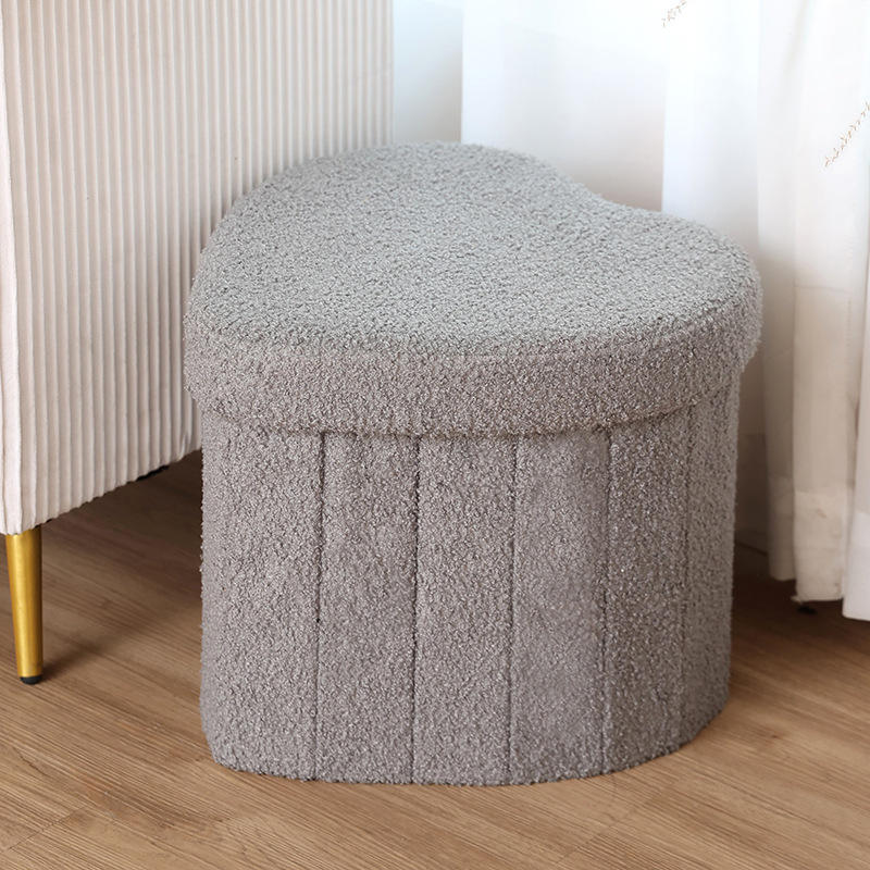 Round Sherpa Storage Ottoman with Soft Padded Seat Folding Footrest and Organizer for Living Room
