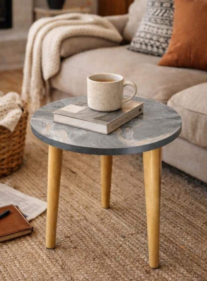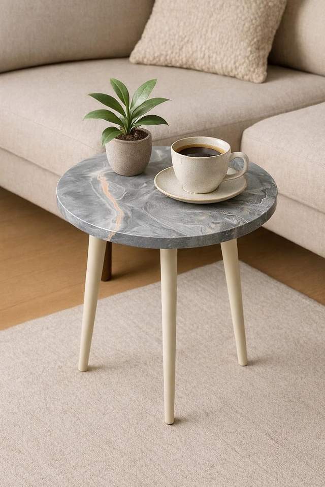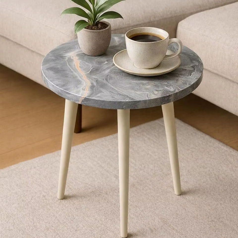 Round Side Table, Small End Table for Living Room, Modern Wood Accent Table Coffee Side Table with Wood Legs for Small Space
