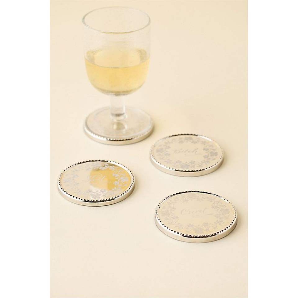 Round Silver Mirror Finish Metal Coaster Set Anti-Slip Elegant Tableware Drink Holder Decorative Coffee Mat with Beaded Border