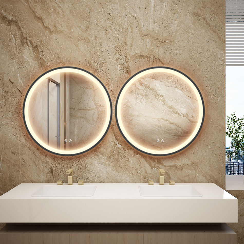Smart Modern LED Frame Mirror with Illuminated Aluminum Sensor Touch Switch Defogger 3000k-6000k Light for Bathroom Living Room