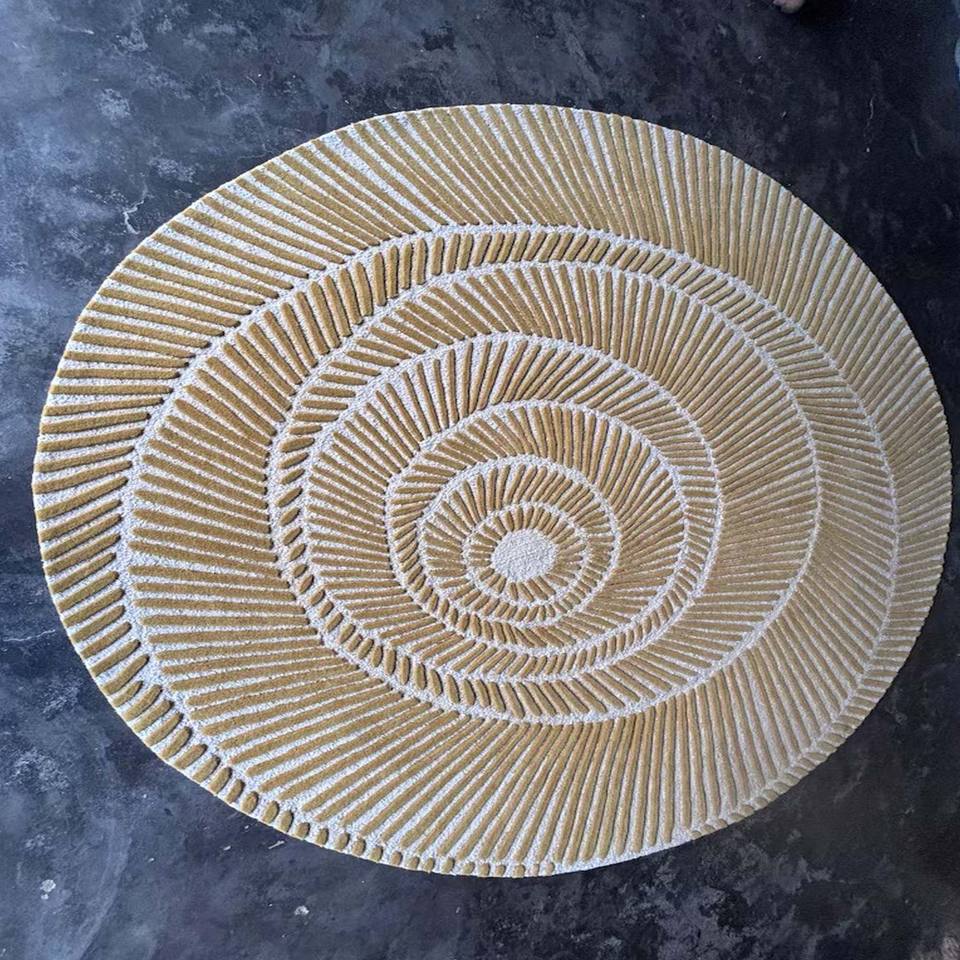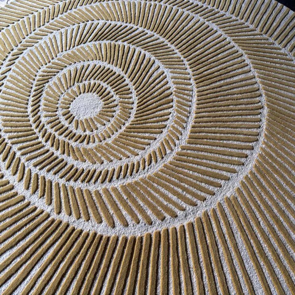 Round Spiral Pattern Rug Beige Cream Textured Modern Hand Tufted Area Rug Carpet Luxury Designer Living Room Bedroom Floor Decor