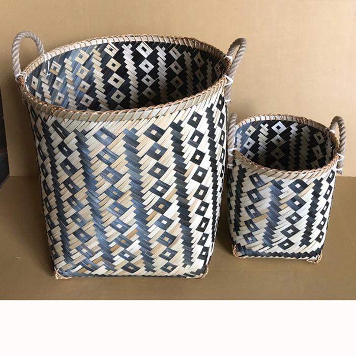 Round Square Customized Decorated Colorful Bamboo Laundry Basket With Handle Natural Handmade Vietnamese