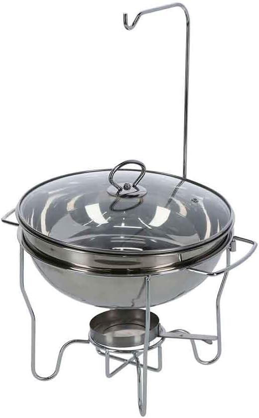 Round Stainless Steel Chafing Dish with Tempered Glass Lid & Hook Portable Buffet Food Warmer for Catering Party & Home Services