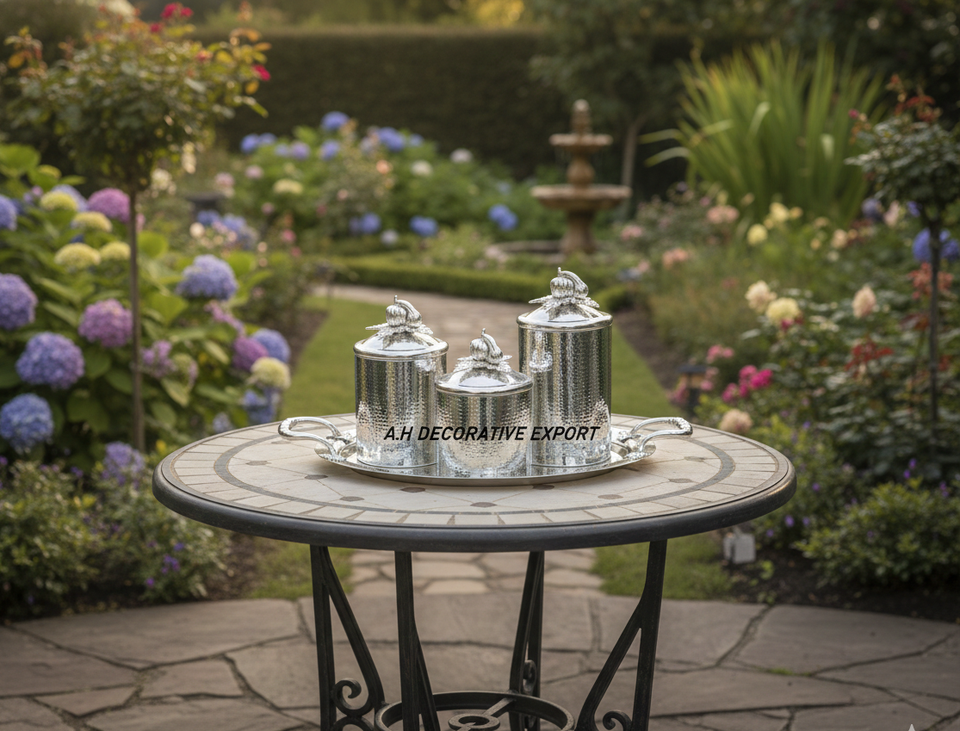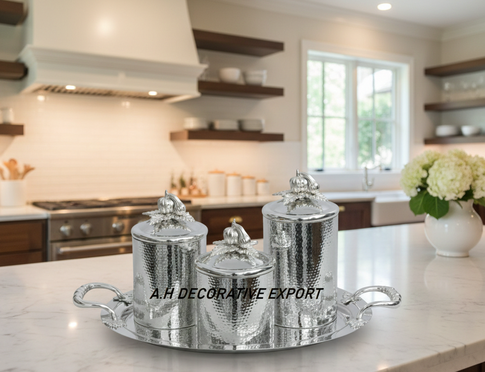 Round Stainless Steel Silver Canister Set Serving Pumpkin Tray Eco-Friendly Europe Style Handcrafted Multi-Purpose Food Storage