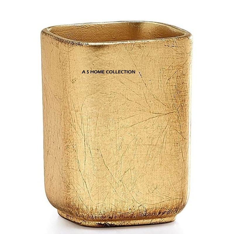 Round Stainless Steel Toothbrush Holder With Golden Top Border Luxury Home Bathroom Set Black Finished