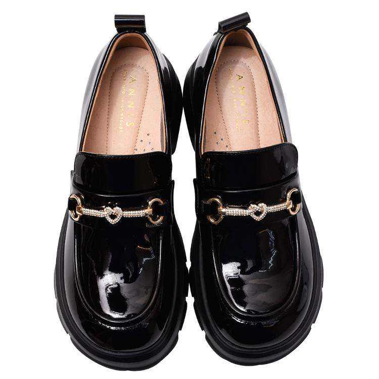 Heart Rhinestone Horsebit Loafers Round-Toe Slip-On Patent Leather Upper