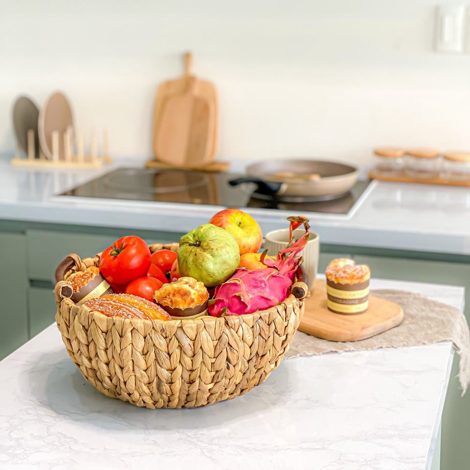 Custom Round Bamboo Storage Basket with Handle Hyacinth Water Hyacinth Woven Laundry Basket for Kitchen Use