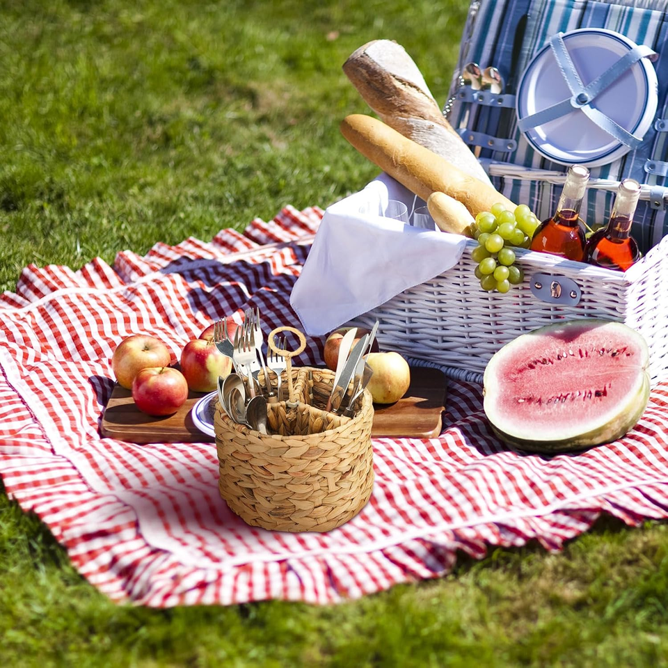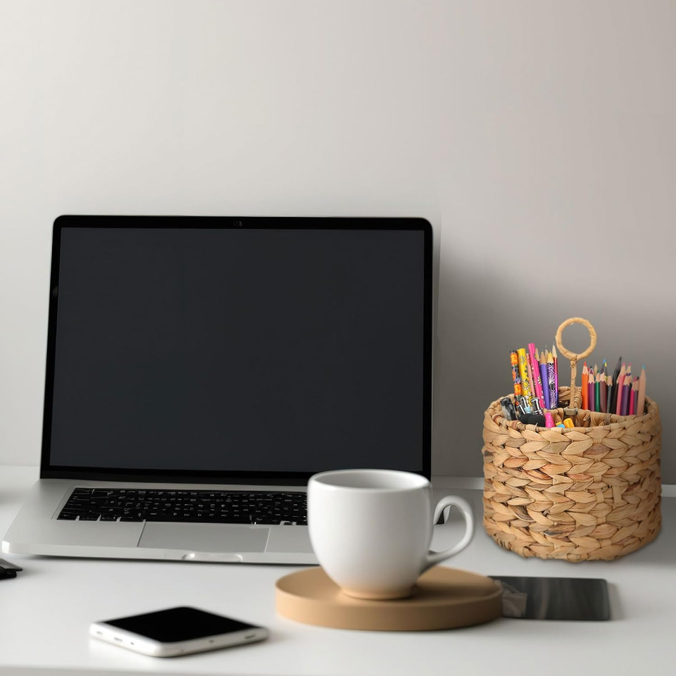 Round Water Hyacinth Utensil Caddy Eco Living Organizer for Flatware, Napkins, and Kitchen Essentials Storage