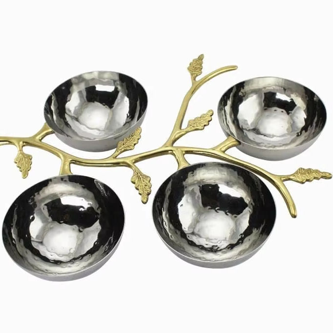 Round White Metal 4 Serving Bowls for Home Hotel & Tabletop Bowl Silver Plated Stem Holder Set Dry Fruits Chocolate Serving Bowl