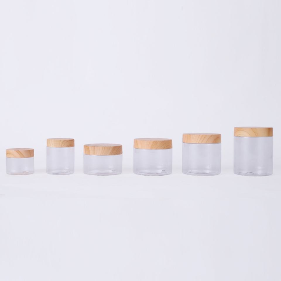 Round Wood Lid pp Cap clear Pet Food Grade Smooth Side Bamboo Lid Cosmetic Jars 500ml Pet Jar, clear Plastic Jar with Bamboo Lid