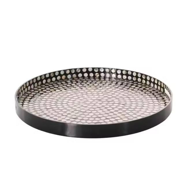 Round Wood Resin Tray Mother of Pearl Inlay Handicrafts for Home Serving Food Nuts Snacks Chocolates