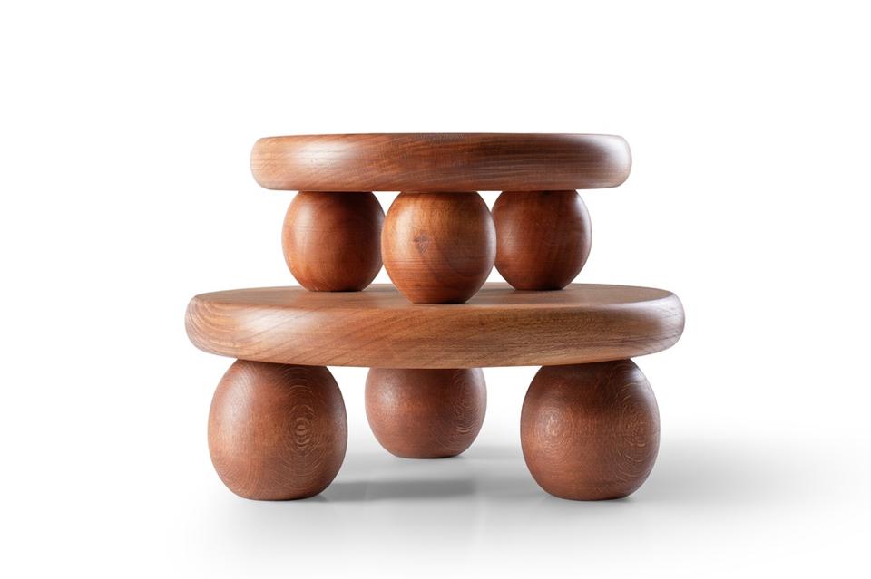 Round Wood Serving Board with Ball Feet Beech Wood Cake Stand Centerpiece or Charcuterie Tray Elegant Serving