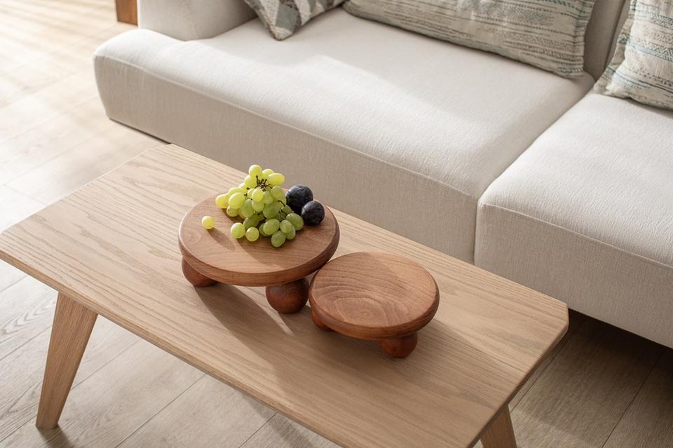 Round Wood Serving Board with Ball Feet Beech Wood Cake Stand Centerpiece or Charcuterie Tray Beech Material