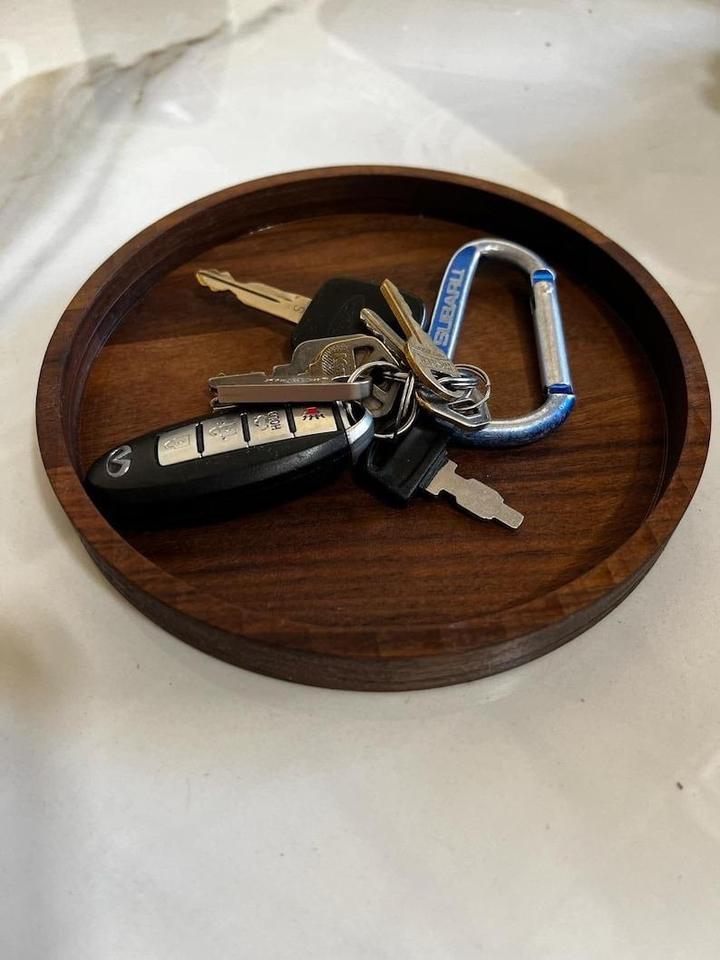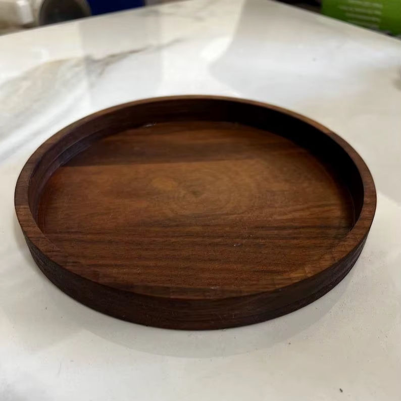 Round Wood Serving Tray-Single Tier American Style Biodegradable Home Organization for Spice Beverage & Tableware Storage