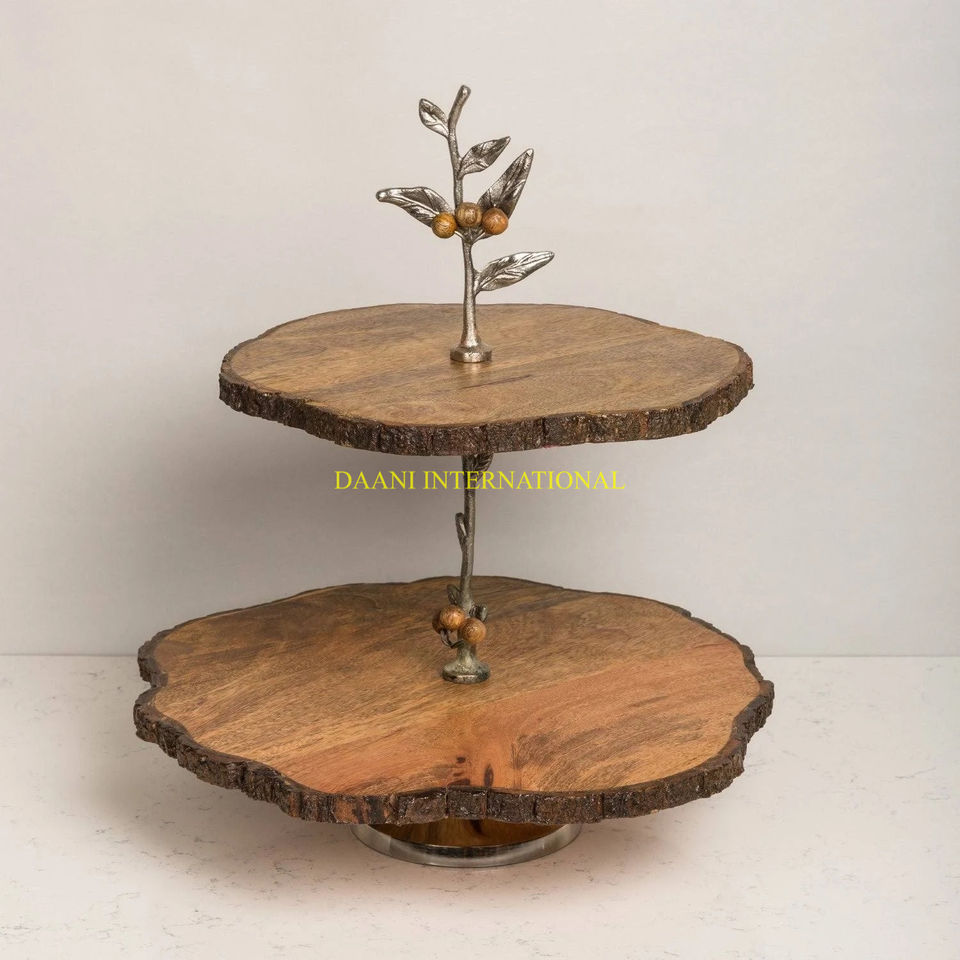 Round Wooden Cake Holder With Black Pedestal Base Rustic Farmhouse Dessert Display Stand Serving Platter For Bakery Party Table