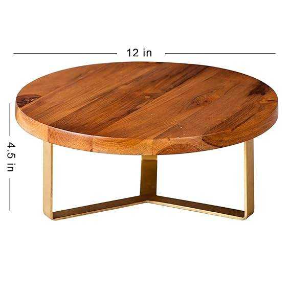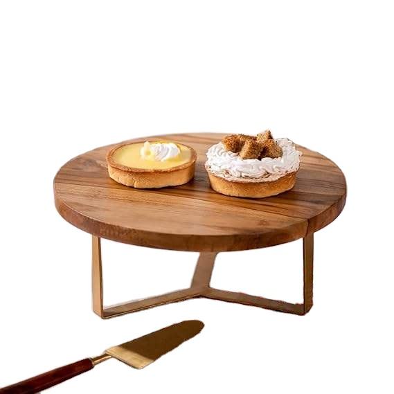Round Wooden Cake Stand with Gold Metal Base 12 Inch Dessert Display Riser for Wedding Party Bakery Decoration