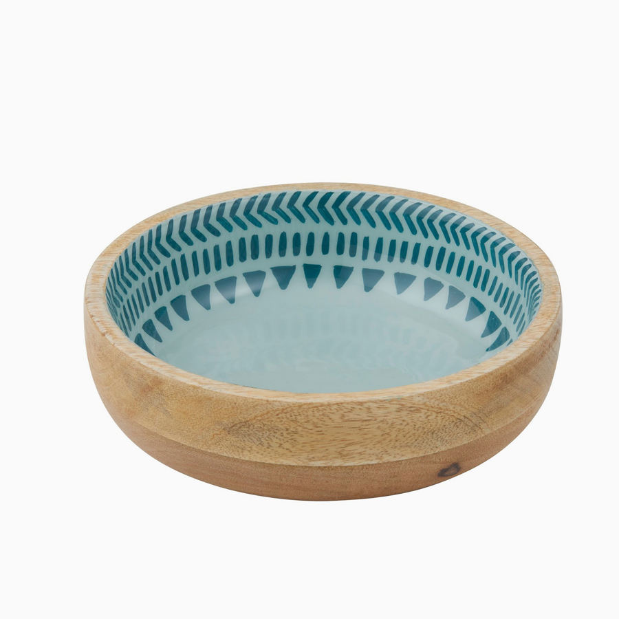 Round Wooden Fruits Bowl With Inside Enamel